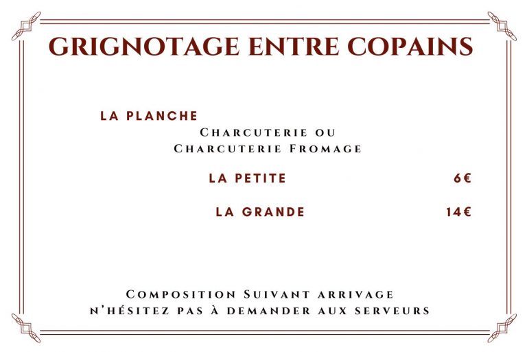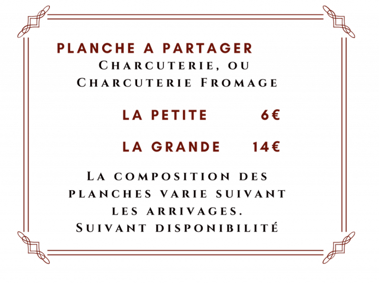 Et pourquoi ne pas accompagner vos boissons d’une planche apéritive 🙂